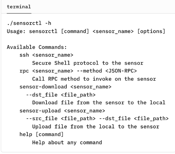./sensorctl rpc [sensor-name] --method [RPC-method]